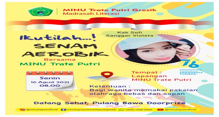 Dalam rangka mempererat tali silaturrahim, menjaga kebugaran di tengah pandemi Covid-19 dan memperingati hari kemerdekaan ke-76 RI, MINU Trate Putri Gresik menggelar kegiatan Senam Aerobik bersama para guru, staff, karyawan dan pengurus Paguyuban Orang tua Murid (POM) MIPI periode 2021-2022.