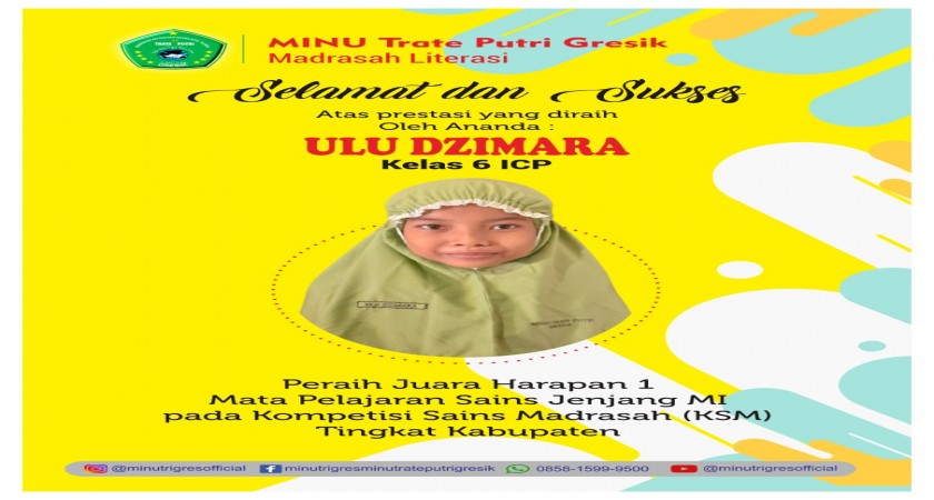 Kami Ucapkan selamat kepada Ananda Ulu Dzimara kelas 6 ICP yang telah mengharumkan nama Madrasah.